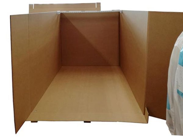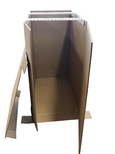 Ogni kit comprende fascia in cartone ondulato, fondo e coperchio, pancale su misura, ferramenta e supporti appendiabiti in acciaio.