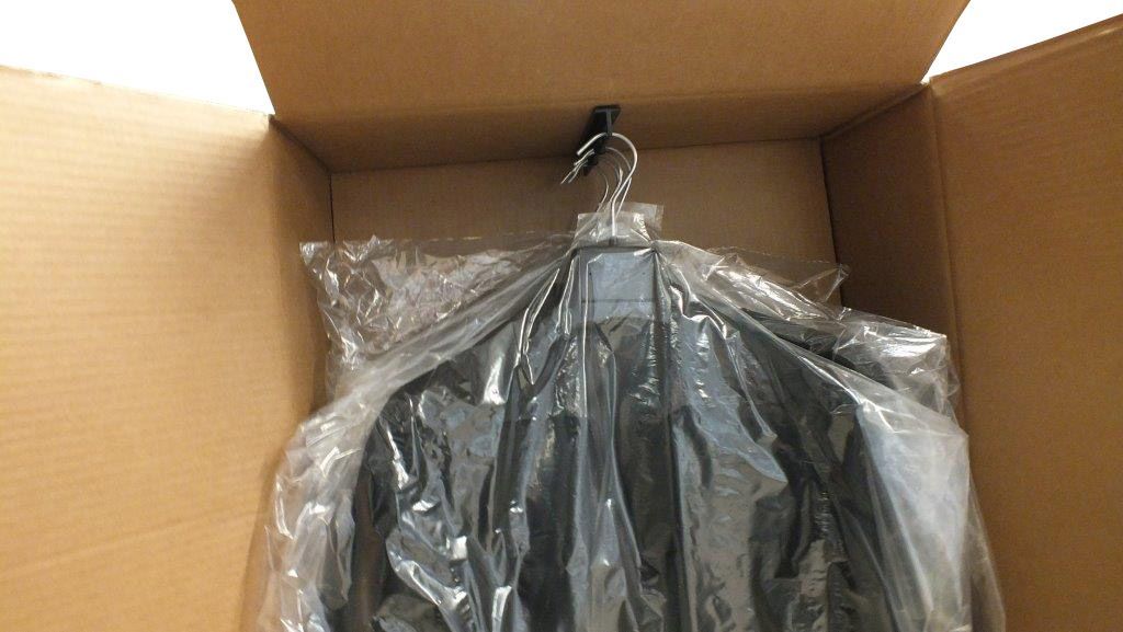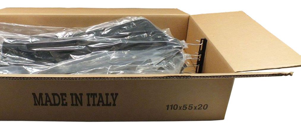 Grazie a un design intelligente, le scatole sono dotate di due supportini con spazi dedicati alle grucce, così da mantenere i capi fermi durante il trasporto. La larghezza delle scatole corrisponde esattamente a quella delle grucce, evitando spostamenti interni. Questo sistema assicura che i capi arrivino a destinazione stirati, ordinati e pronti all’uso, senza necessità di ulteriori lavorazioni o stirature.